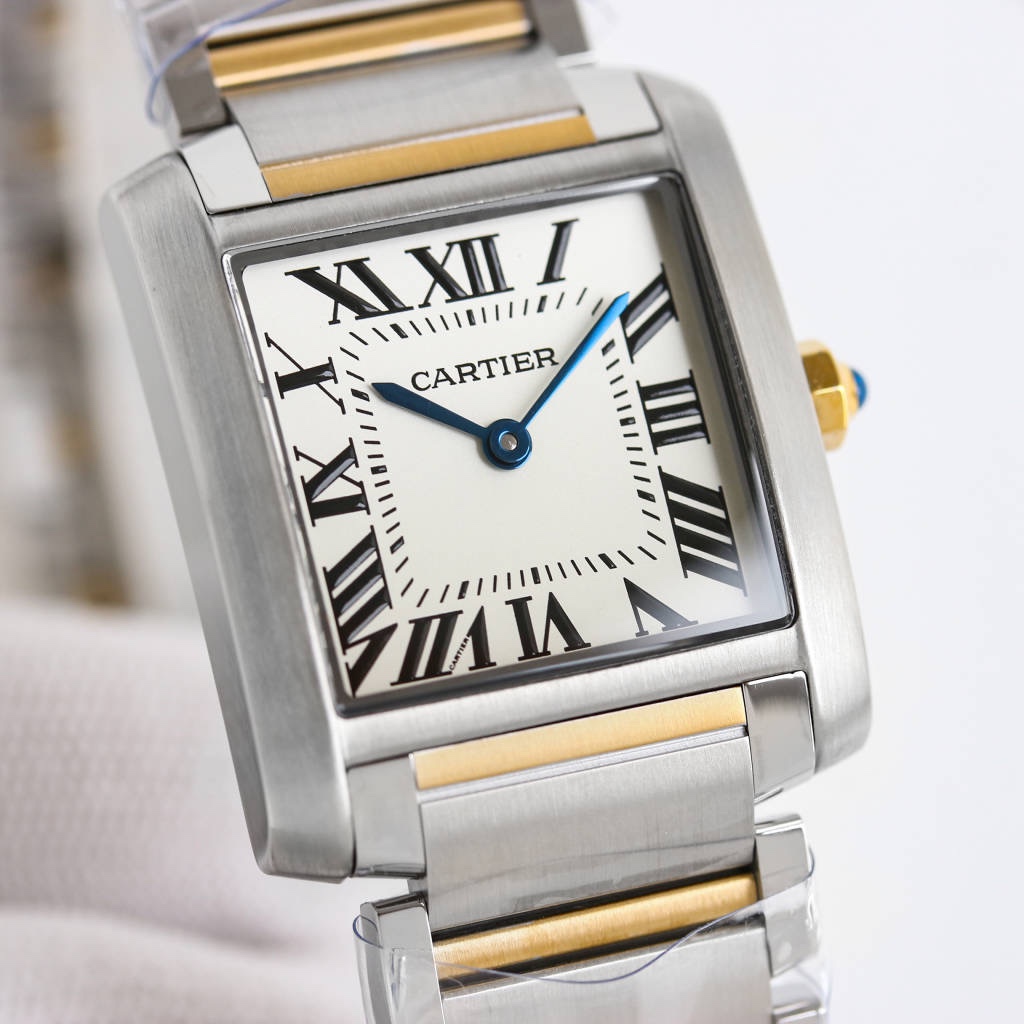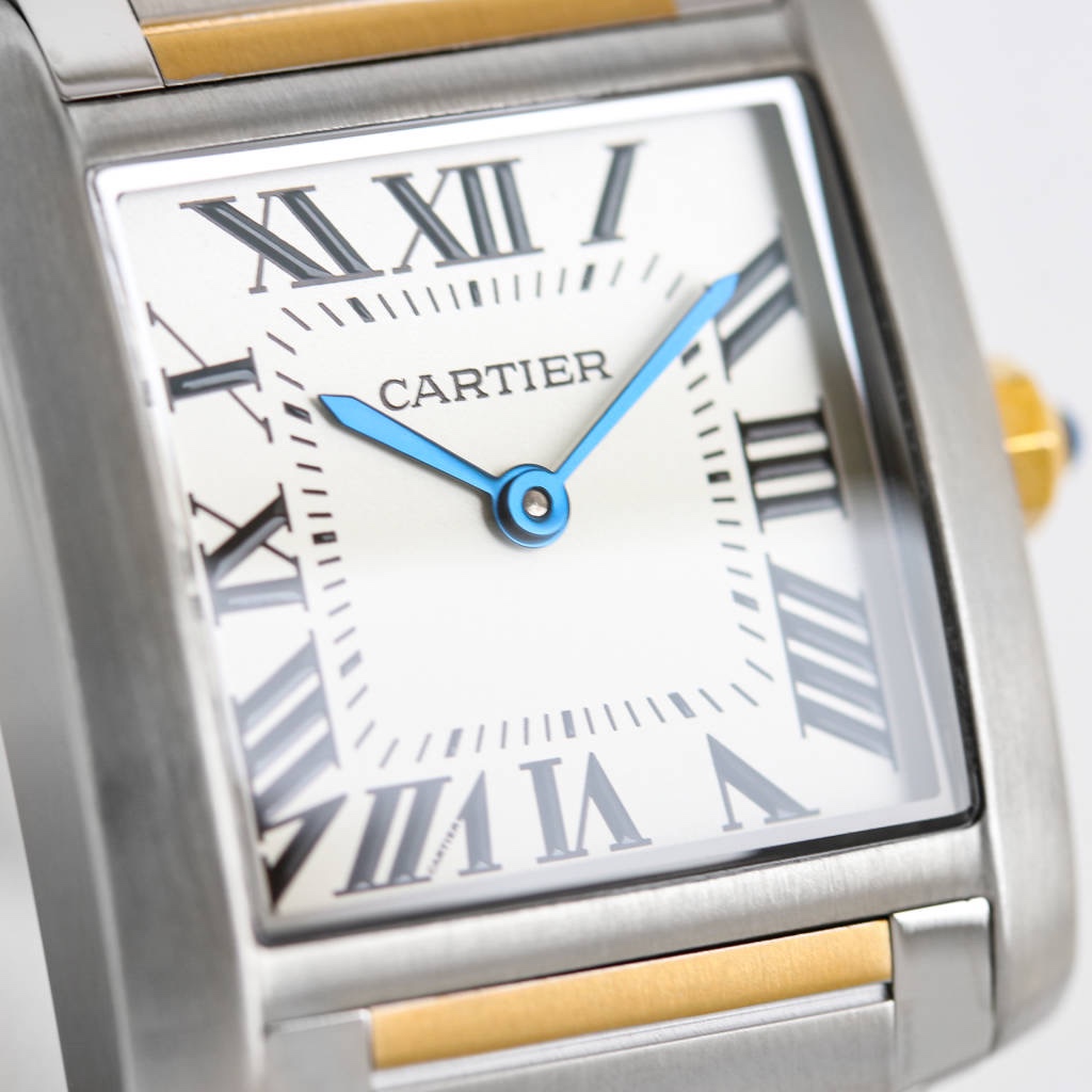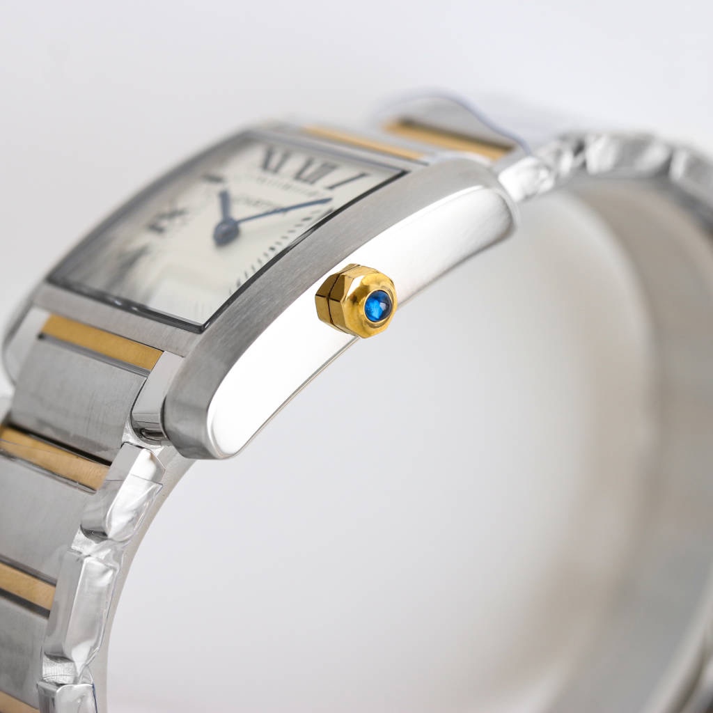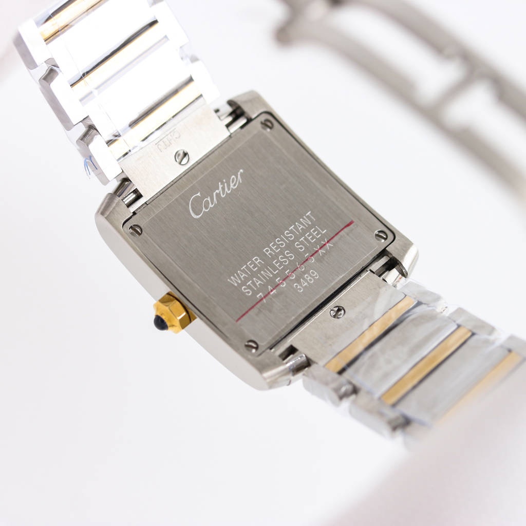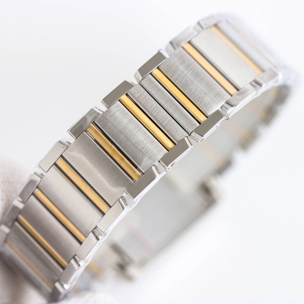 • Cartier Tank 30mm x 25mm White Dial Steel Bezel Yellow Gold Steel Strap W2TA0003 Woman Ladies