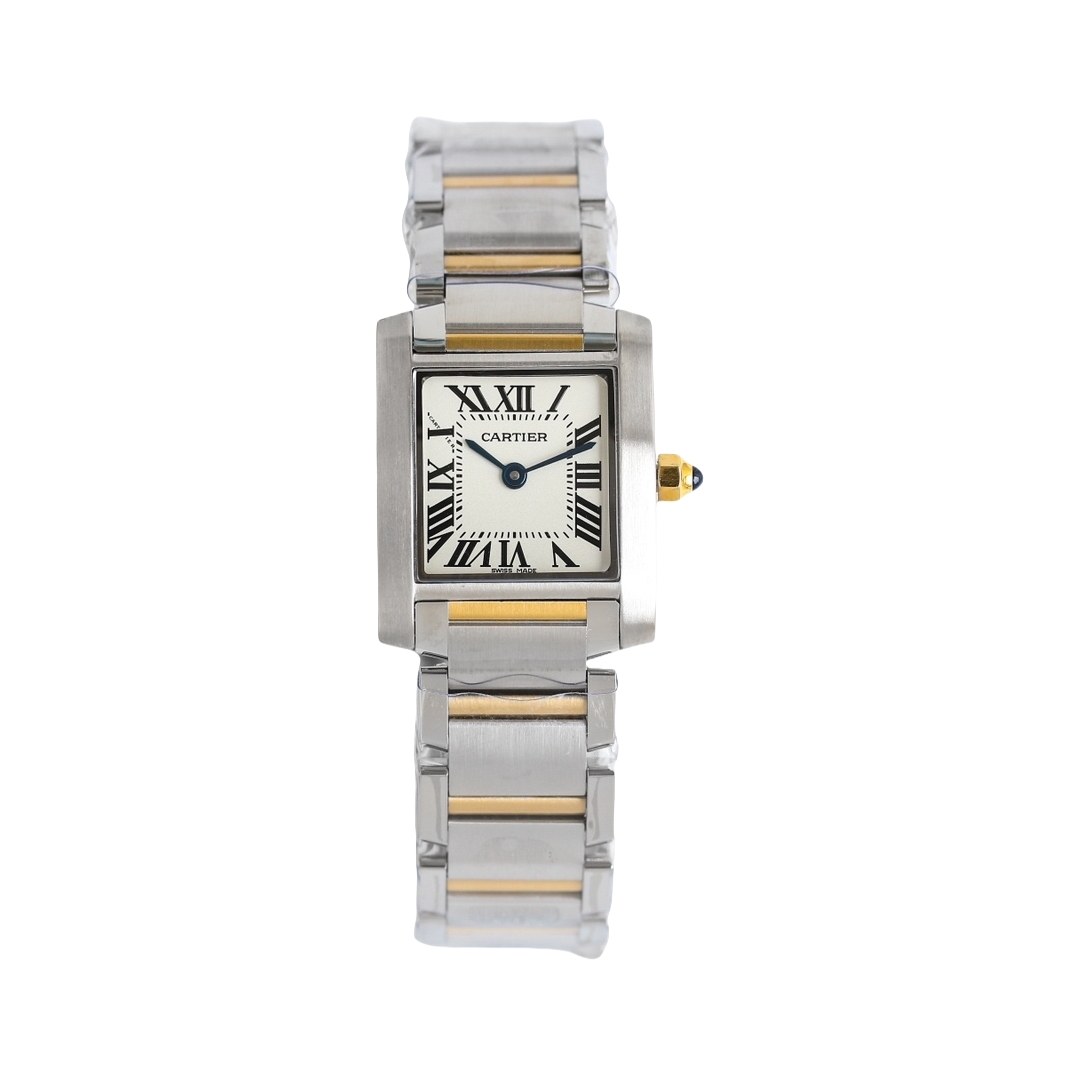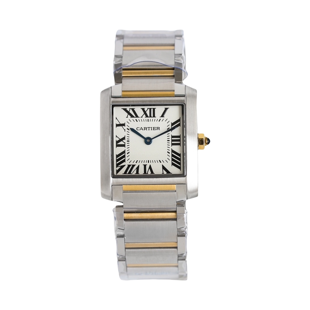 Cartier Tank 30mm x 25mm White Dial Steel Bezel Yellow Gold Steel Strap W2TA0003 Woman Ladies