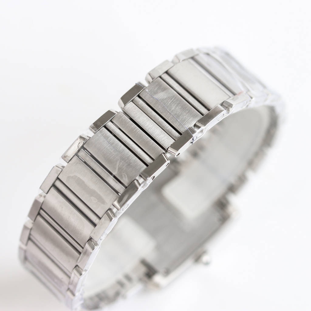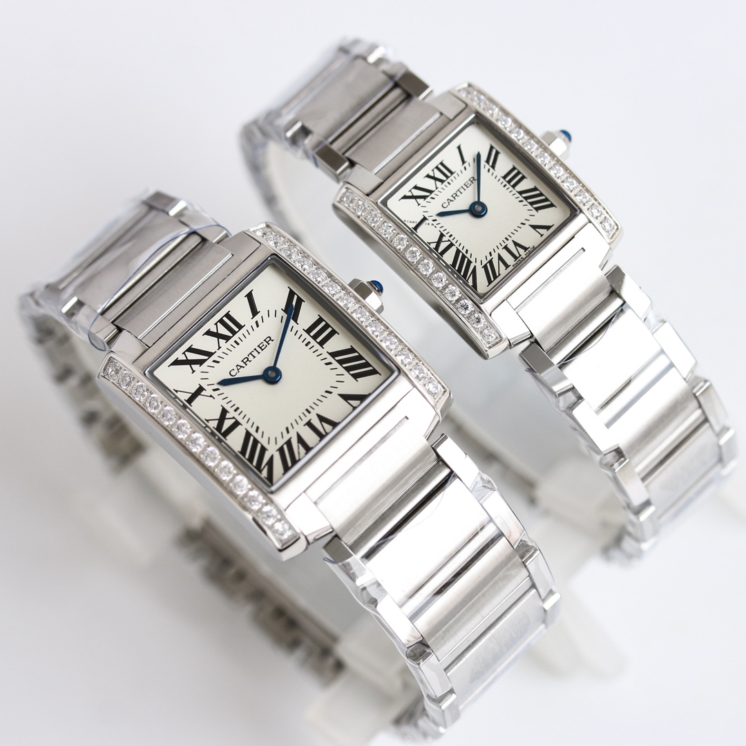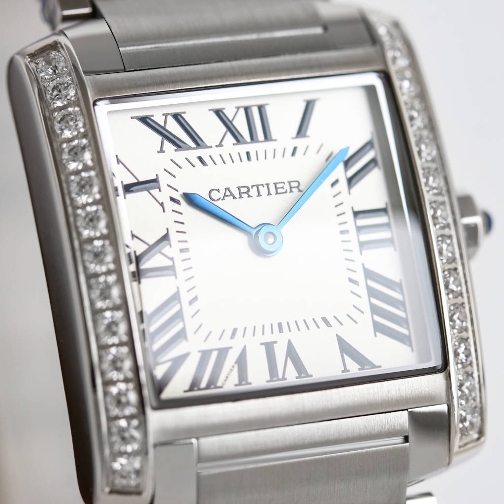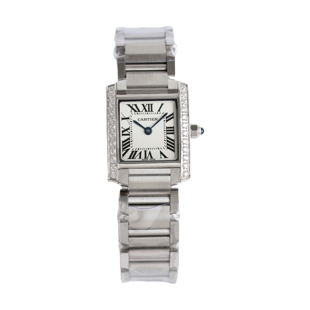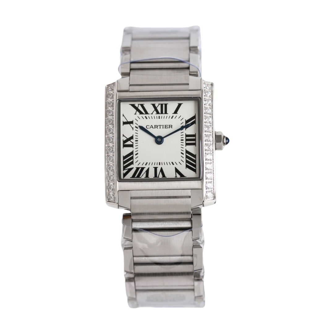 Cartier Tank 30mm x 25mm White Dial Steel Diamond Bezel W4TA0009 Woman Ladies