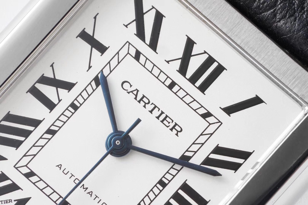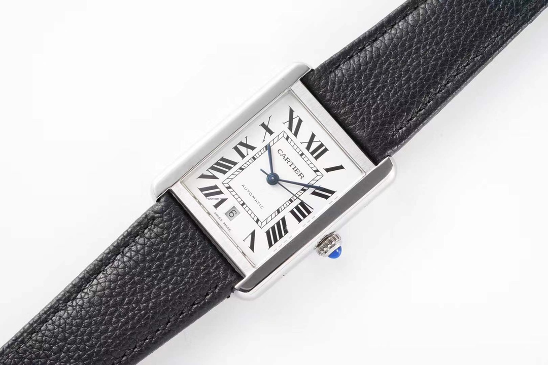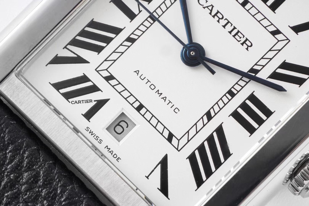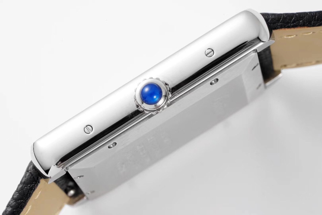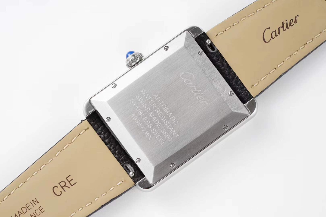 | Cartier Tank 41mm x 31mm White Dial Steel Bezel Black Leather Strap WSTA0040 | |